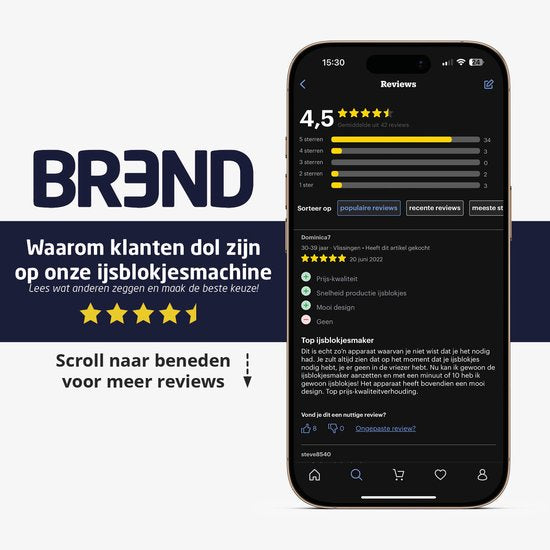 Plus de tracas avec les moules à glaçons ou les sacs onéreux du magasin. Avec le BREND BR-2213, il vous suffit d'ajouter de l'eau et la machine s'occupe du reste. Après seulement 9 minutes, vous obtiendrez de petits glaçons, et après 10 minutes, de plus gros. Idéal pour un rafraîchissement rapide!