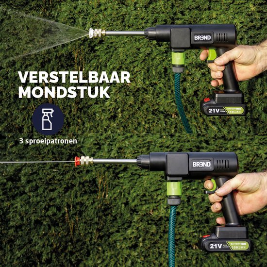 BREND BR-2235 Nettoyeur haute pression sans fil avec batterie et buse réglable - 3 modes de pulvérisation - Pulvérisateur haute pression avec tuyau d'aspiration et bouteille - Noir