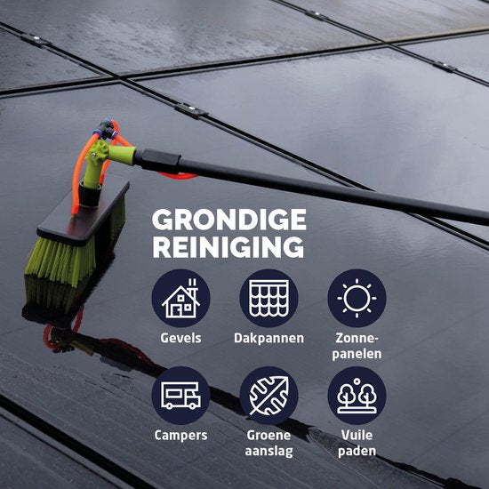 Votre façade est couverte de dépôts verts ou les tuiles de votre toit sont encrassées ? Avec la brosse de lavage télescopique BREND BR-2237, vous pouvez facilement nettoyer les zones en hauteur et difficiles d'accès. Le manche télescopique en 5 parties peut être étendu jusqu'à 7 mètres, ce qui vous permet de travailler efficacement sur les façades, les gouttières, les panneaux solaires et les chemins de jardin sans échelle.