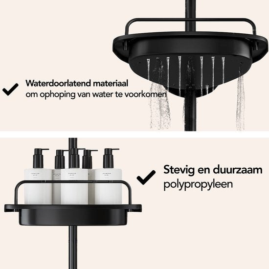 Est-ce que vous en avez fini avec le désordre dans la douche ? Le support de douche Brixy offre la solution parfaite pour tous vos besoins dans la salle de bain. Grâce à sa conception télescopique astucieuse et à ses quatre niveaux de réglage en hauteur, cet élégant support de douche vous permet de ne plus jamais avoir à vous pencher pour atteindre vos produits de douche préférés. Idéal pour les familles nombreuses ou les amateurs de produits de beauté qui souhaitent garder leur salle de bains organisée et bien rangée. Ce support de douche n'est pas seulement fonctionnel, il attire également le regard grâce à sa finition noire moderne. Fabriqué en polypropylène robuste, il est facile à assembler sans perçage. Apportez commodité et style à votre salle de bains et découvrez pourquoi le support de douche Brixy est indispensable !