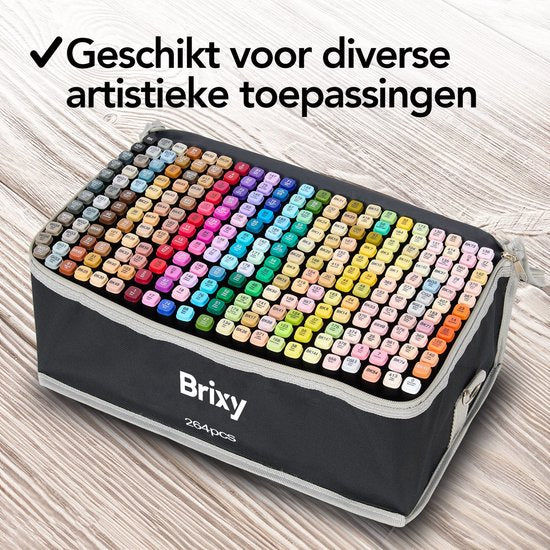 Brixy Twinmarkers 264 pièces - Marqueurs professionnels à alcool - pointe double face - marqueurs - sac de rangement avec support