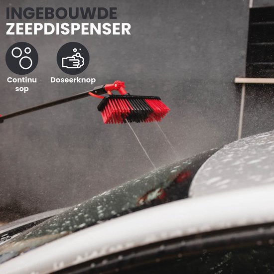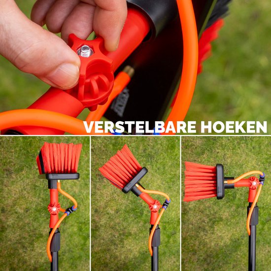 Il suffit de raccorder la brosse à votre tuyau d'arrosage via le connecteur universel OGS et vous avez un accès instantané à l'eau courante. Le distributeur de savon intégré vous permet également de nettoyer avec du savon.Le distributeur d'eep avec bouton de dosage vous permet de contrôler la quantité de détergent que vous appliquez. Il est encore plus pratique grâce à la tête réglable, qui vous permet de positionner la brosse à l'angle idéal pour chaque tâche.