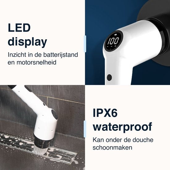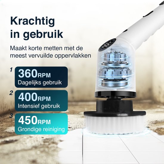 Expérimentez la commodité étendue avec notre brosseuse électrique rotative, équipée d'une poignée réglable pour atteindre même les endroits difficiles d'accès. De plus, cette brosse à essorer est alimentée électriquement, de sorte que vous n'aurez plus jamais à nettoyer manuellement ! Tout-en-un Découvrez l'ultime brosse à récurer multi-usages de Samako. Comprend 9 attaches différentes pour différentes surfaces, telles que les fenêtres, les carreaux, les sanitaires, et plus encore.Les cuisinières et même les véhicules. Grâce à cette polyvalence, vous disposez d'un outil puissant pour tous vos travaux de nettoyage, ce qui vous permet d'économiser du temps et des efforts tout en obtenant des résultats étincelants. Inclut des brosses: - Grande et ronde : salle de bain, salon, cuisine, chambre - Étroite et ronde : cuisine, salle de bain, meubles, chaussures - Étroite et pointue : cuisine, coins, meubles, chaussures - Éponge : vitres, tables - Chiffon : sellerie cuir, vitres - Laine : voiture, sols - Brosse en fibres : taches tenaces - Éponge à récurer : cuisine, cuisinière - Attache : pour les 2 éponges incluses 3 vitesses puissantes Notre brosse à récurer électrique Samako Nanopro dispose de trois vitesses réglables pour répondre à tous vos besoins en matière de nettoyage. Conçue pour durer La brosse à récurer NanoPro présente un design attrayant et des performances fiables. Cela fait de la brosse à récurer un investissement précieux qui remonte grâce à des années de performances constantes. Plus besoin d'acheter des chiffons ou des éponges qui se décolorent après une seule utilisation. Cette brosse à essorer offre un confort de nettoyage tout-en-un grâce à ses multiples accessoires, vous offrant la bonne solution pour chaque surface.Cet outil pratique met tout à portée de main. Qu'est-ce qu'il y a dans la boîte ? Fonctionnalités à l'esthétique soignée :