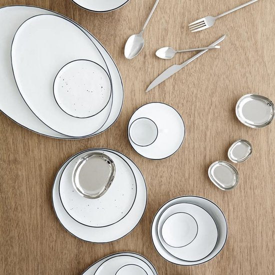 Pas de lignes rigides et obstructives, mais des formes naturelles. La vaisselle Salt de Broste Copenhagen est enrichie d'un processus de cuisson spécial qui donne à chaque assiette sa forme "ronde" unique et lui permet également de varier légèrement en couleur.