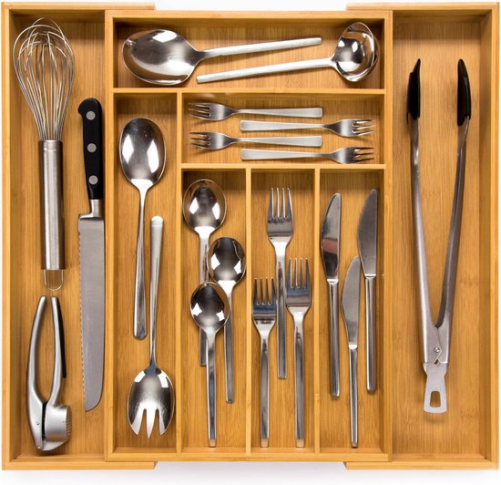 Budu Range-couverts extensible en bambou #47 (47 cm de profondeur) - Cassette à couverts en bois - Tiroir à couverts - 47 x 30.6 - 50 cm - 6/8 compartiments
