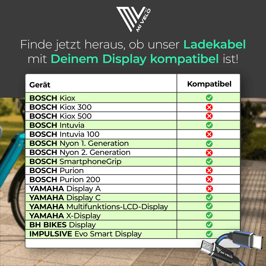 Chargez votre smartphone directement via l'écran de votre vélo électrique Bosch pendant que vous pédalez. Ce câble de charge MiVelo avec micro-USB vers USB-C est spécialement conçu pour être utilisé avec les vélos Bosch Intuvia, Kiox (sauf Kiox 300) et les anciens modèles Nyon. Idéal pour les smartphones Android avec connexion USB-C. Les connecteurs robustes en aluminium et le câble tressé en font un compagnon fiable pour chaque trajet.