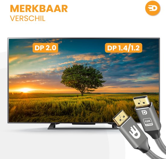 Avec le câble DisplayPort 2.1 de Drivv. DisplayPort 2.1, vous êtes prêt pour des sessions de jeu intenses ou des activités professionnelles exigeantes.Tâches d'édition vidéo. Ce câble tire pleinement parti de la puissance de votre carte graphique - des dernières NVIDIA RTX aux AMD Radeon - et prend en charge les moniteurs jusqu'à 240Hz en 4K et jusqu'à 60Hz en 16K.