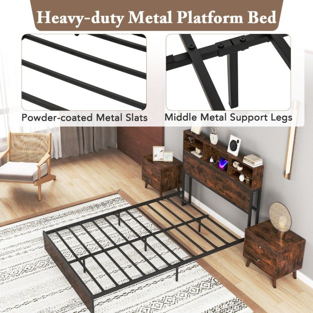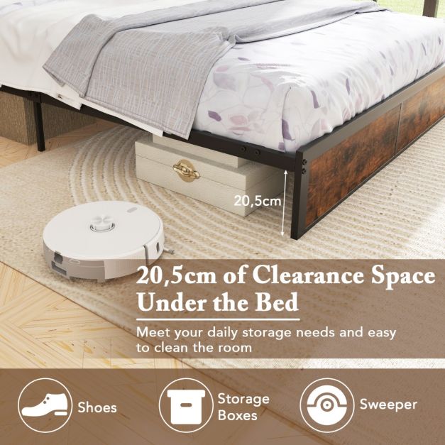 coast Cadre de lit double 200 x 140 cm - Cadre en métal avec chargeur - Rustic Brown - Avec tête de lit avec rangement