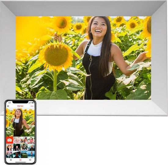 Cadre photo numérique Denver 10,1 pouces - FULL HD - Frameo App - Cadre photo - WiFi - 16GB - IPS Touchscreen - PFF1064W