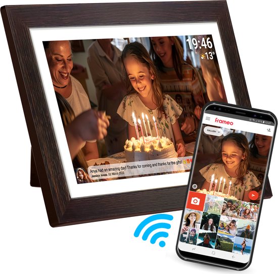 Cadre photo numérique Denver 15,6 pouces - Bois - XL - Full HD - Frameo App - Cadre photo - WiFi - 16GB - IPS Touchscreen - PFF1543DW