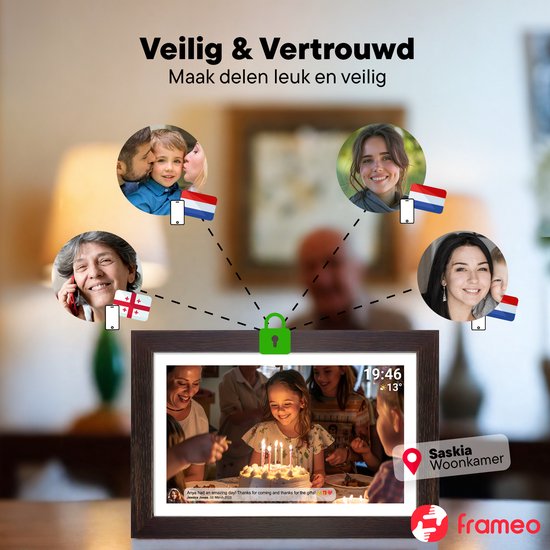 Les photos sont uniquement envoyées via l'application et ne sont pas stockées par Frameo.