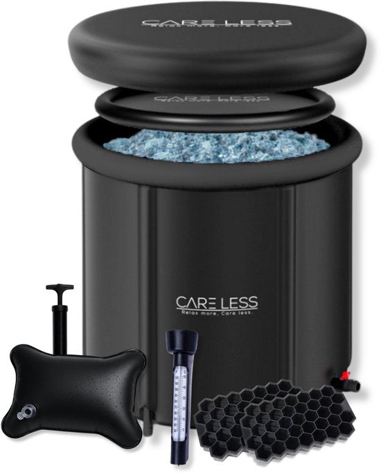 Care Less - Ice Bath XL - Baignoire pliable - Baignoire assise - Baignoire plongeante - 85CM - Pliable et avec couvercle - Pompe et tuyau de vidange inclus - Piscine - Seau de bain - Noir