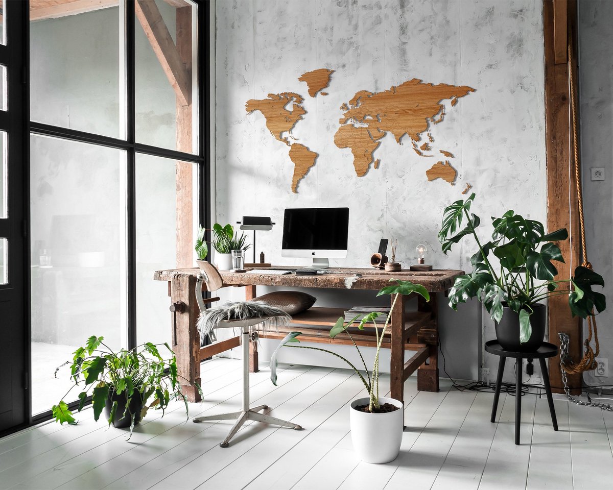 La mappemonde en chêne est livrée avec un système de suspension magnétique et des entretoises en bois spéciales qui permettent de la suspendre à 6 millimètres du mur. Il en résulte un effet de flottement particulier. La carte du monde elle-même est facile à fixer à l'aide d'un pistolet à colle ou d'une perceuse. Et pour que les différents pays et continents soient placés exactement au bon endroit, un gabarit en papier est inclus. Cette carte du monde en bois sera donc accrochée chez vous en un rien de temps !