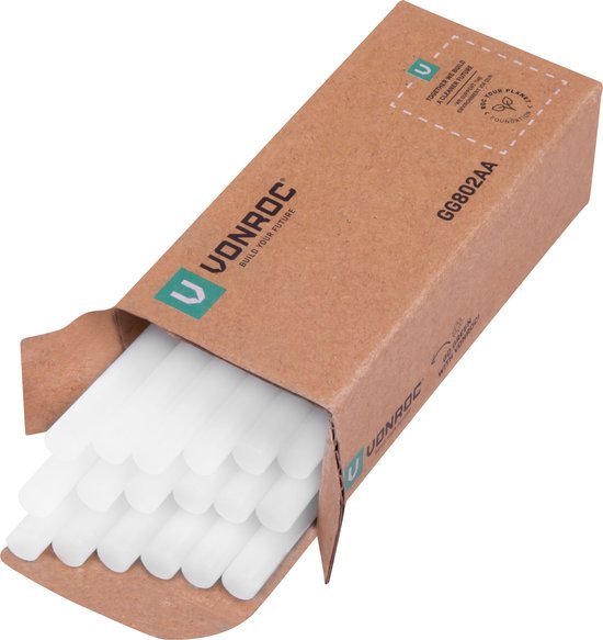 Ces bâtons de colle sont le complément idéal de votre pistolet à colle VONROC GG502DC, mais sont également compatibles avec d'autres marques de pistolets à colle. Vous souhaitez disposer d'un plus grand nombre de cartouches de colle ? Découvrez le VONROC S GG802AA, ce set contient jusqu'à 90 cartouches de colle!