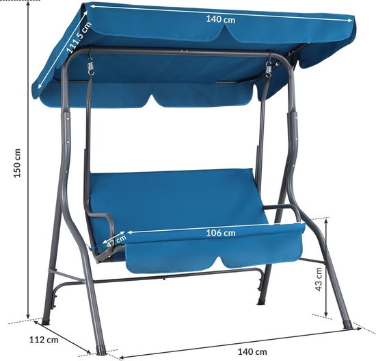 Le coussin et le toit sont fabriqués en tissu oxford 600 x 300 D de haute qualité, qui est hydrofuge et excellent pour une utilisation en extérieur.