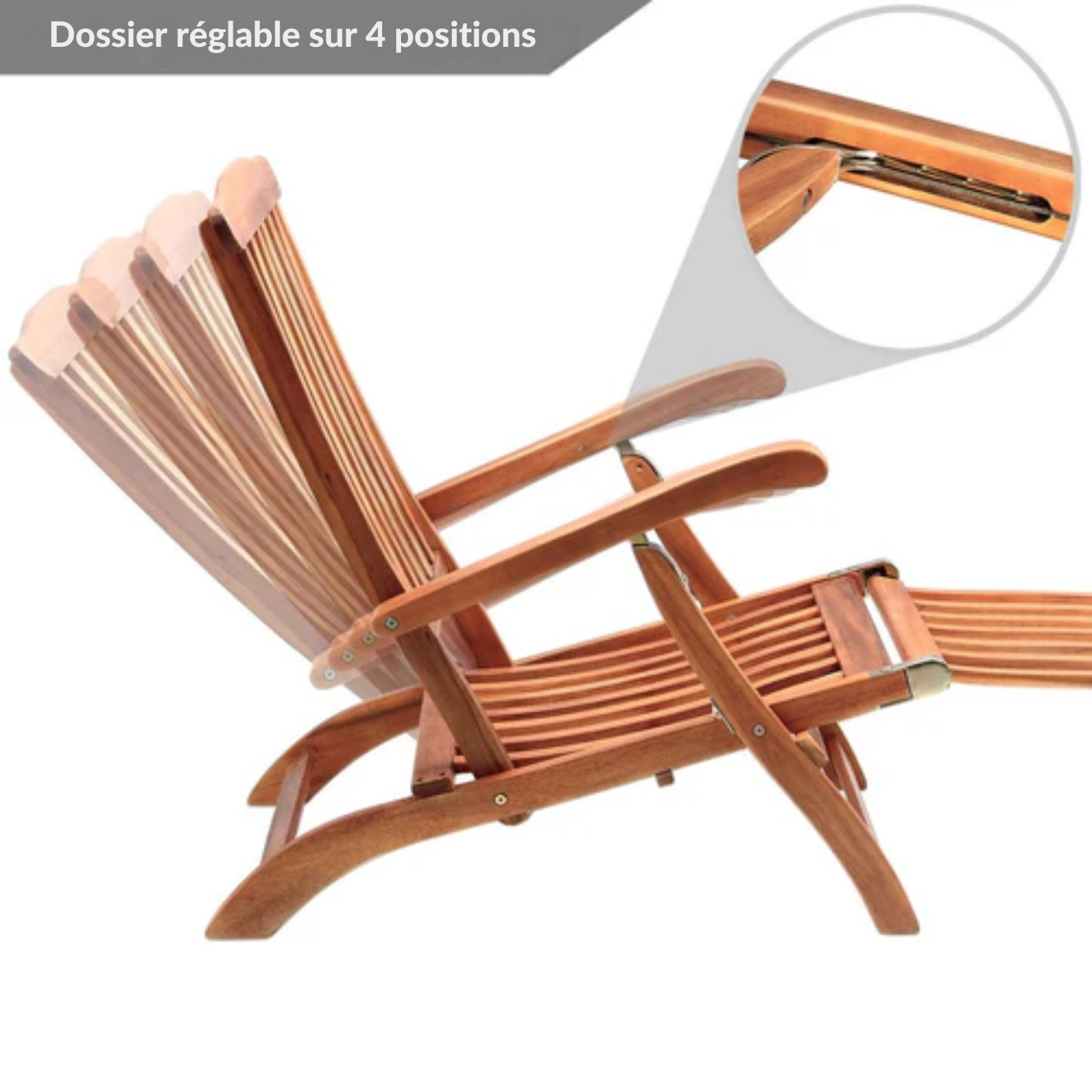 Bois d'Acacia de Qualité : Fabriquée à partir de bois noble d'acacia, cette chaise longue offre un toucher doux et agréable, garantissant votre confort pendant de longues heures de détente.