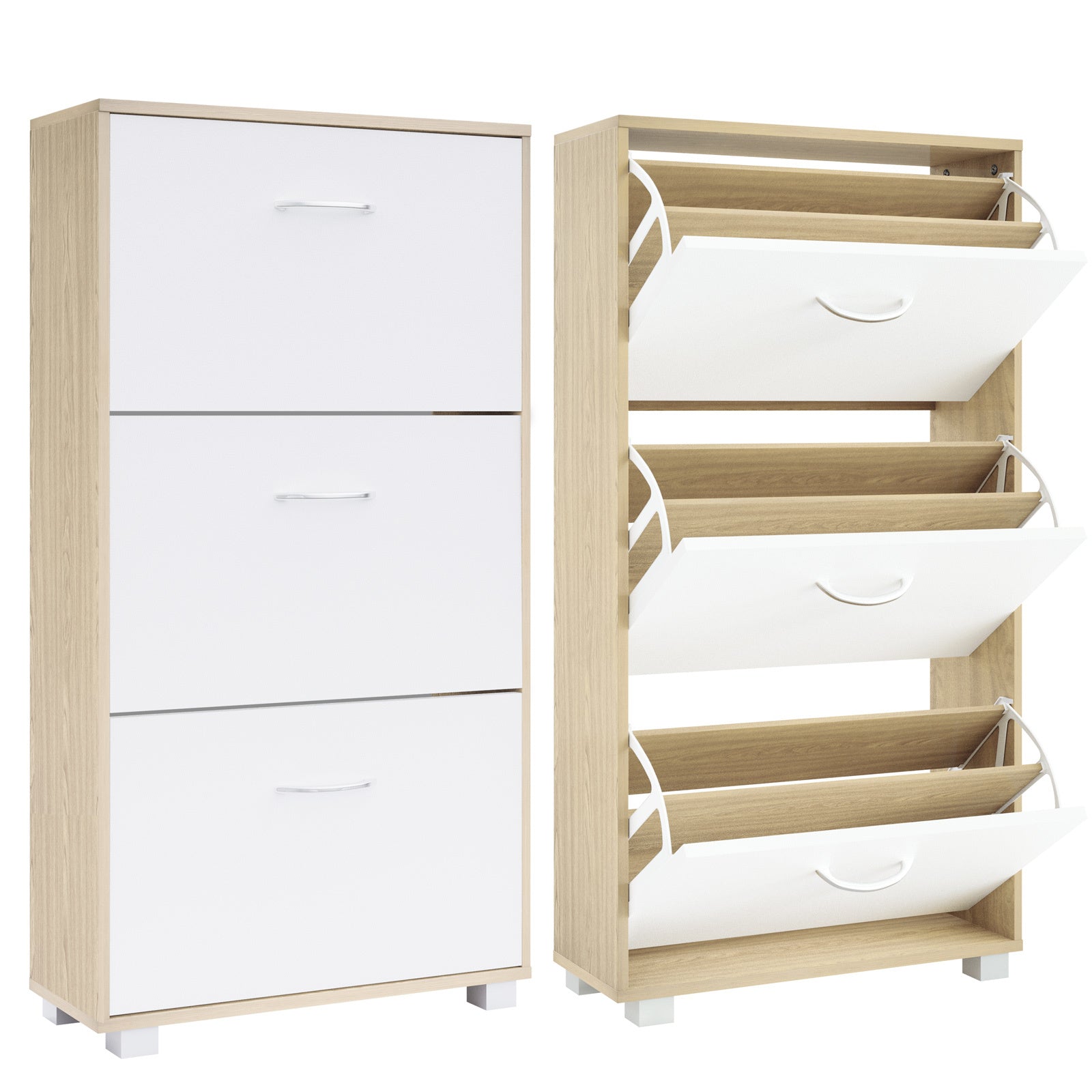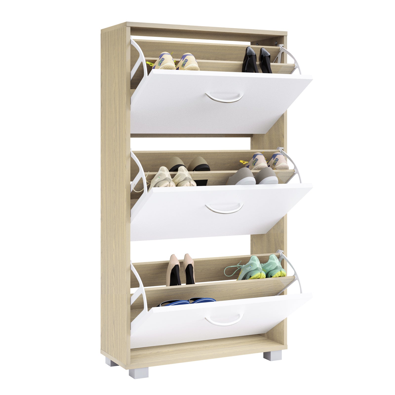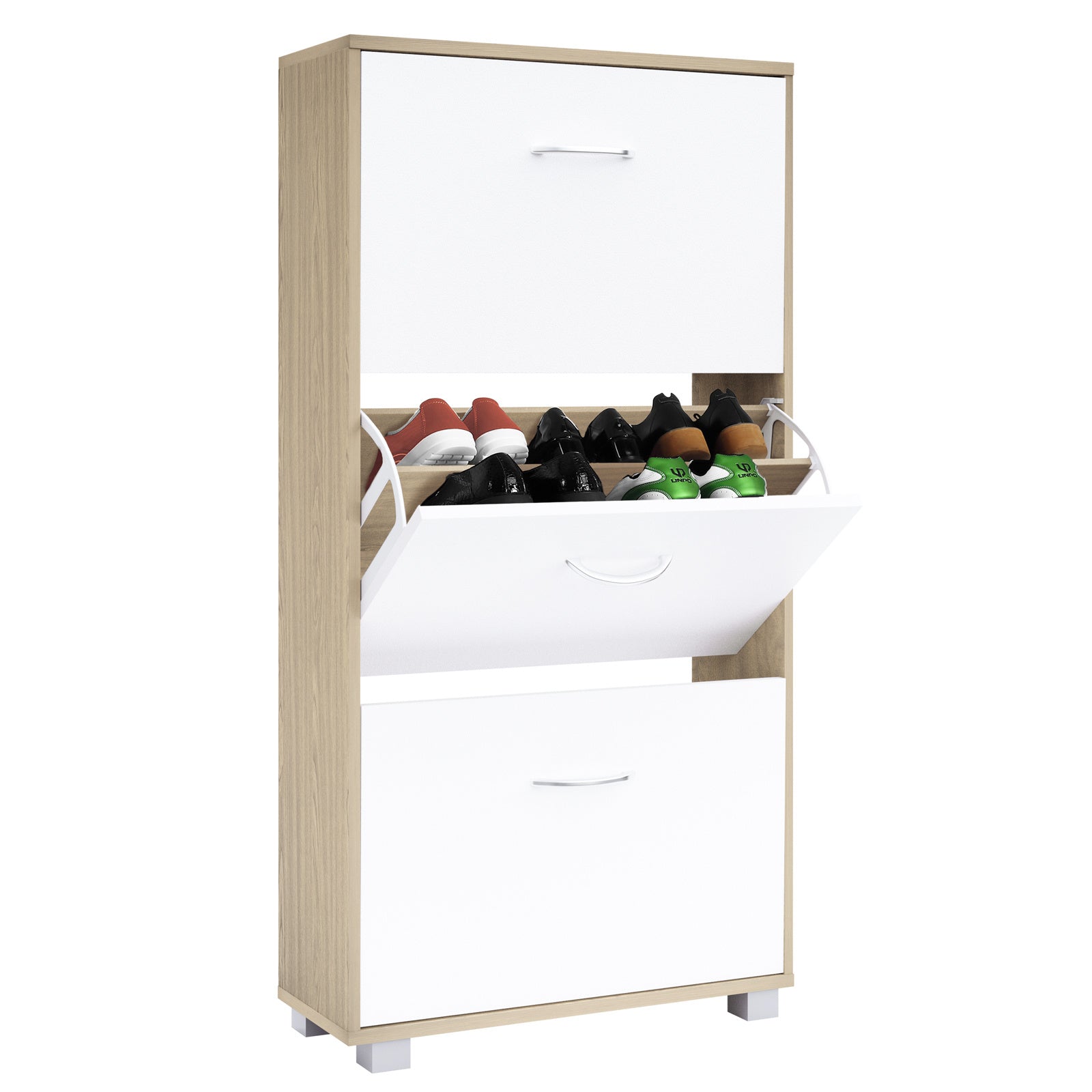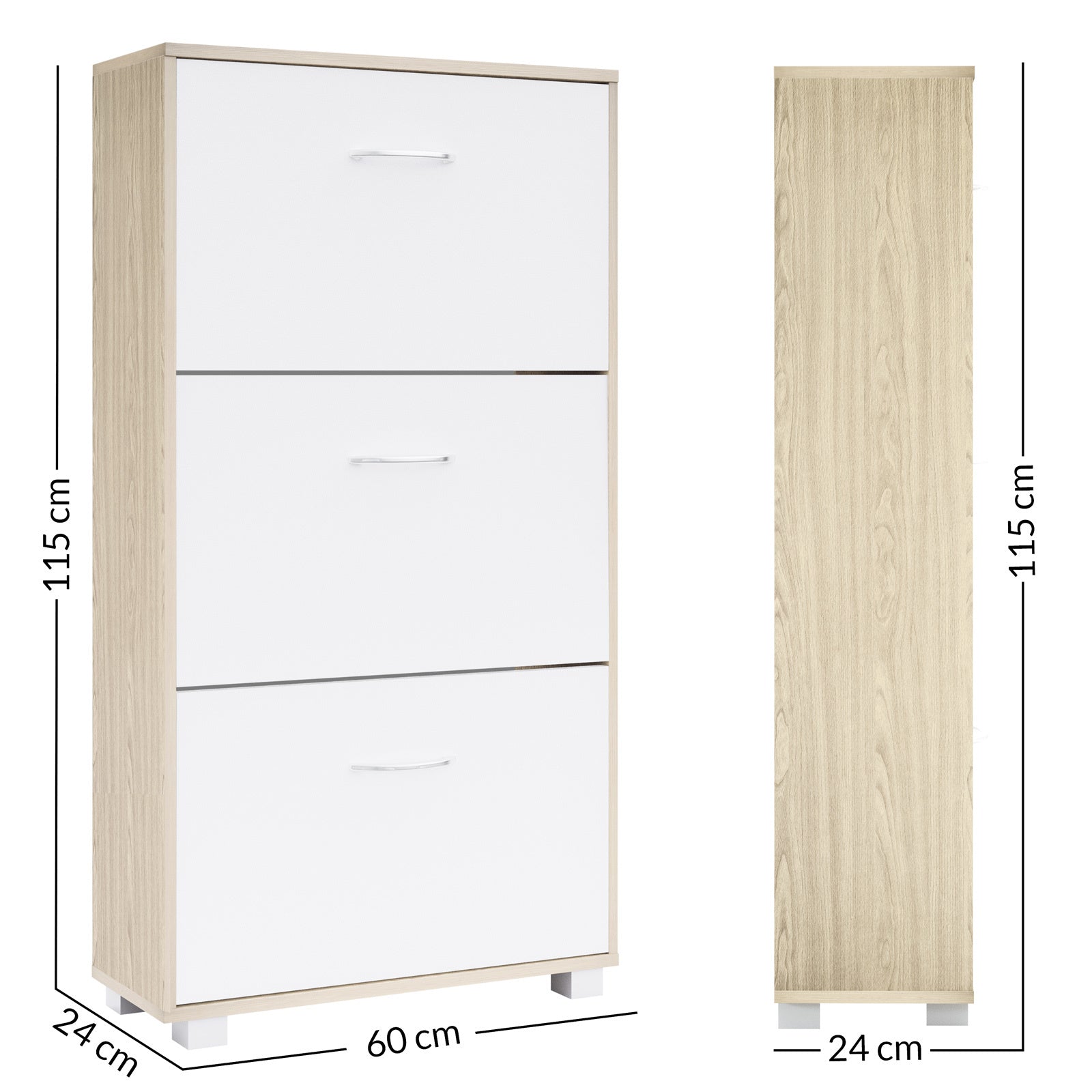 Armoire à chaussures - 3 volets - 115x60x24cm - 18 paires de chaussures - Chêne/Blanc
