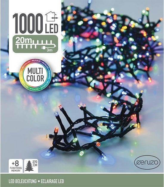 Ceruzo Lumières de Noël colorées - Micro Cluster - 1000 LEDs - 20 mètres - 8 fonctions lumineuses + mémoire - multicolore