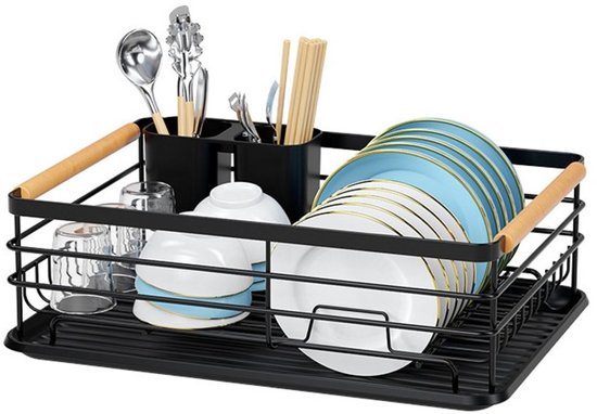 Ceruzo Porte-vaisselle avec égouttoir - Porte-couverts - Egouttoir en métal - Egouttoir en plastique - 42x31x15cm- Noir