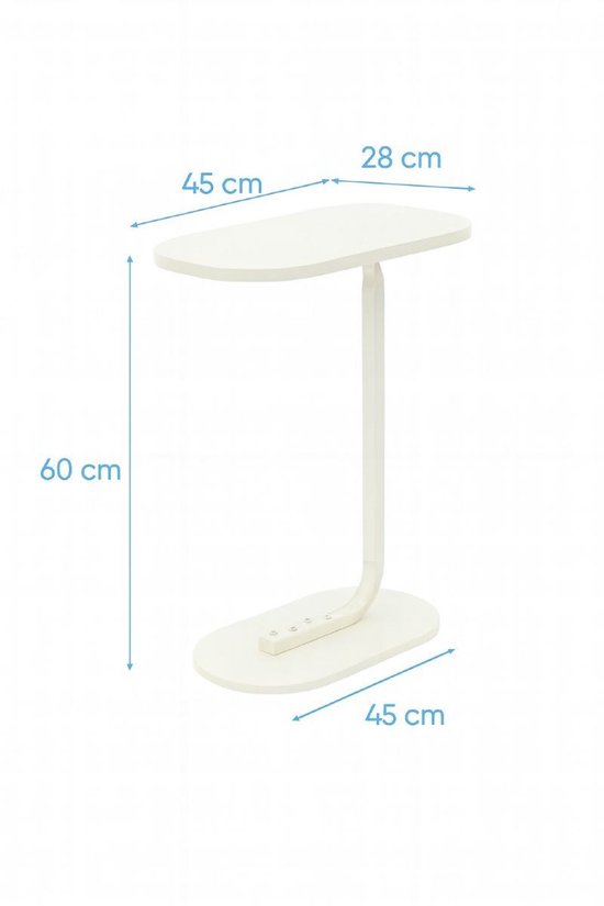 Ceruzo Side Table - Table banc blanche - Métal et bois - Table basse - Forme C - Compacte - 45x28x60cm