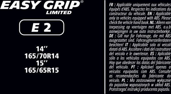 - Les chaînes à neige Michelin Easy Grip Limited sont certifiées avec la marque d'essai européenne uniforme EN 16662-1 et peuvent être utilisées dans tous les pays européens de sports d'hiver. à l'exception de l'Autriche, peuvent être utilisées