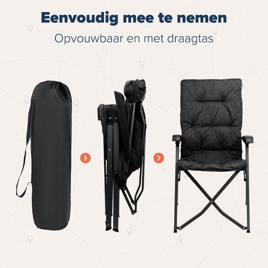 TRVLMORE Chaise de camping - Sac de transport inclus - Chaise pliante confortable - Capacité de charge de 150 kg - Chaise de camping - Rangement - Chaise pliante - Noir