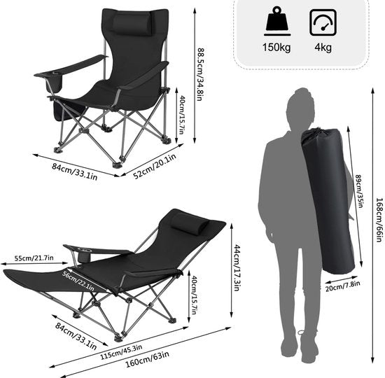 Chaise de camping : [Woltu] - super Confortable - Pliable - Léger - Appui-tête amovible - Repose-pieds rétractable