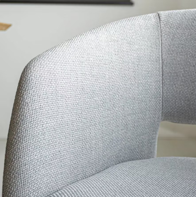 La chaise de salle à manger Boden allie un design intemporel à un grand confort d'assise. Le revêtement en tissu doux gris clair est agréable au toucher, tandis que l'assise en forme de baquet assure une posture naturelle et de soutien. La structure robuste en métal noir confère à la chaise un aspect moderne et la rend adaptée à un usage quotidien.
