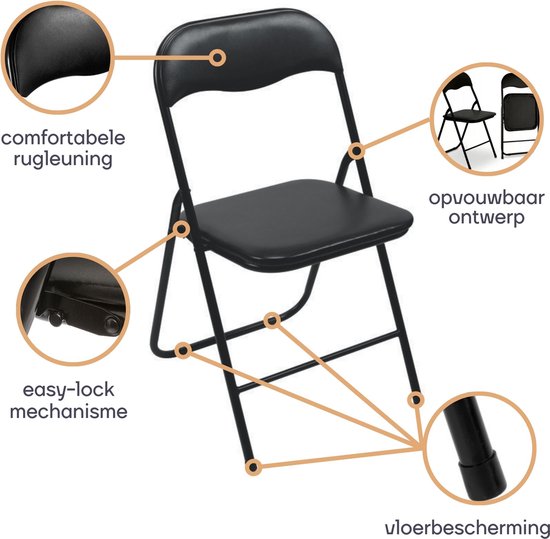 Perel Chaise pliante, pliable, résistante aux intempéries, 150 kg maximum, événements, réunions, petits espaces, noir