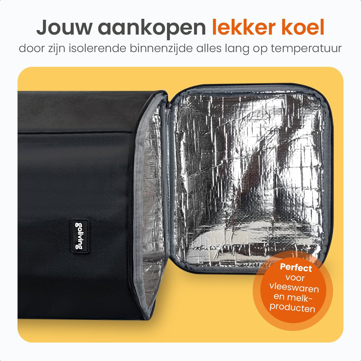 Chariot de courses - Goliving - Avec poches latérales et compartiment réfrigérant - Pliable - Aluminium inoxydable - 50L - Noir