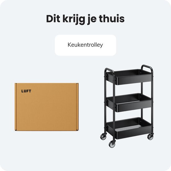 Chariot de cuisine sur roulettes - 3 étages - Rayonnage - Service - Chariot - Armoire - Rangement - Armoires de douche debout - Rayonnage - Noir - Luft