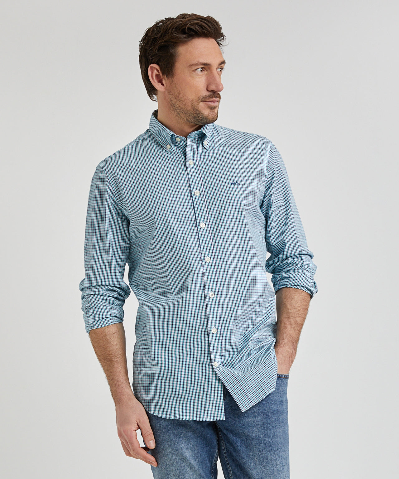 Chemise McGregor à petits carreaux - Aqua - Taille L