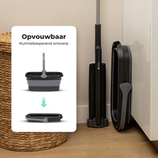 La conception de stockage réfléchie du seau et de la vadrouille permet d'économiser de l'espace de manière significative. Le seau peut être plié de manière compacte et la serpillière peut facilement être rangée verticalement, ce qui rend cet ensemble de serpillière avec seau pliant idéal pour les espaces de vie compacts et permet un rangement facile.