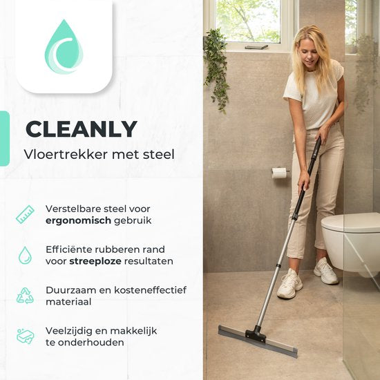 Vous voulez nettoyer facilement et efficacement sans vous faire mal au dos ? Découvrez la raclette de sol réglable CLEANLY avec manche ! Grâce à sa conception pionnière des bords en caoutchouc, elle est idéale pour éliminer l'eau et la saleté sans laisser de traces. Profitez d'un confort ergonomique, d'un nettoyage en profondeur et d'une fonction de verrouillage pratique.