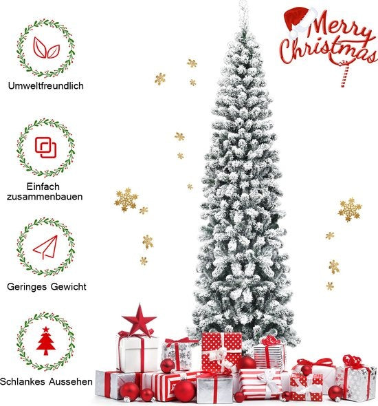 Transformez votre salon en une merveille hivernale unique avec notre arbre de Noël enneigé. Composé de 641 branches en PVC recouvertes de neige, l'arbre est plein et élégant. Il ressemble presque à un vrai conifère. Le sapin est monté sur un support métallique stable qui lui permettra de rester debout pendant des années. En même temps, le support est pliable pour faciliter le rangement. Grâce à sa construction pliable, l'arbre artificiel peut être facilement ajusté et secoué. De plus, cet arbre de Noël peut être divisé en 2/3 parties individuelles et rangé dans un sac de rangement pour être réutilisé plus tard. Avec son look accrocheur, ce sapin de Noël à tête de neige est sans aucun doute une excellente décoration pour n'importe quel endroit. Attributs : sapin de Noël en forme de crayon de neige : avec 641 branches, ce sapin de Noël de 225 cm est plein et élégant. Il transmet une sensation hivernale unique. Grâce à sa forme de crayon mince, il est peu encombrant et peut être installé dans les coins et les pièces peu spacieuses. Aiguilles en PVC de qualité supérieure : les aiguilles de cet arbre artificiel sont en PVC. Grâce à la combinaison d'un matériau de haute qualité et d'une fabrication soignée, ces aiguilles enneigées sont non seulement fidèles à la nature, mais aussi robustes. Par conséquent, elles ne tombent pas facilement et ne se décolorent pas facilement, ce qui garantit une utilisation à long terme. Support métallique robuste : cet arbre de Noël en forme de crayon est doté d'un support en fer en forme de X qui constitue un soutien solide. Comparé à d'autres supports en plastique bon marché, notre support en métal est plus stable et plus résistant à la casse, ce qui lui permet de rester debout pendant des années. Il est également pliable pour un rangement facile. Il suffit de secouer et d'assembler : la construction pliable peut être secouée et légèrement ajustée, ce qui vous permet d'économiser beaucoup de temps et d'efforts. De plus, l'arbre de Noël peut être divisé en deux ou trois parties et placé dans un sac de rangement pour un stockage pratique et une réutilisation ultérieure. Une attraction partout : les aiguilles recouvertes de neige créent une sensation hivernale unique et font de ce sapin de Noël une attraction partout. Vous pouvez l'installer chez vous pour stimuler l'esprit de Noël et célébrer Noël en famille, ou dans les magasins pour attirer l'attention des clients. Caractéristiques : 641 branches pour un aspect dense et réaliste aiguilles couvertes pour une sensation hivernale unique grâce à un design mince et crayon peu encombrant et adapté à l'installation dans les coins et les pièces avec de petites branches en PVC sur les côtés, soigneusement traitées, robustes et résistantes aux couleurs Le support est robuste et pliable support en métal installer et secouer stockage et secouer grâce à la conception pliable rôles pour les appartements, les magasins, les restaurants, etc.