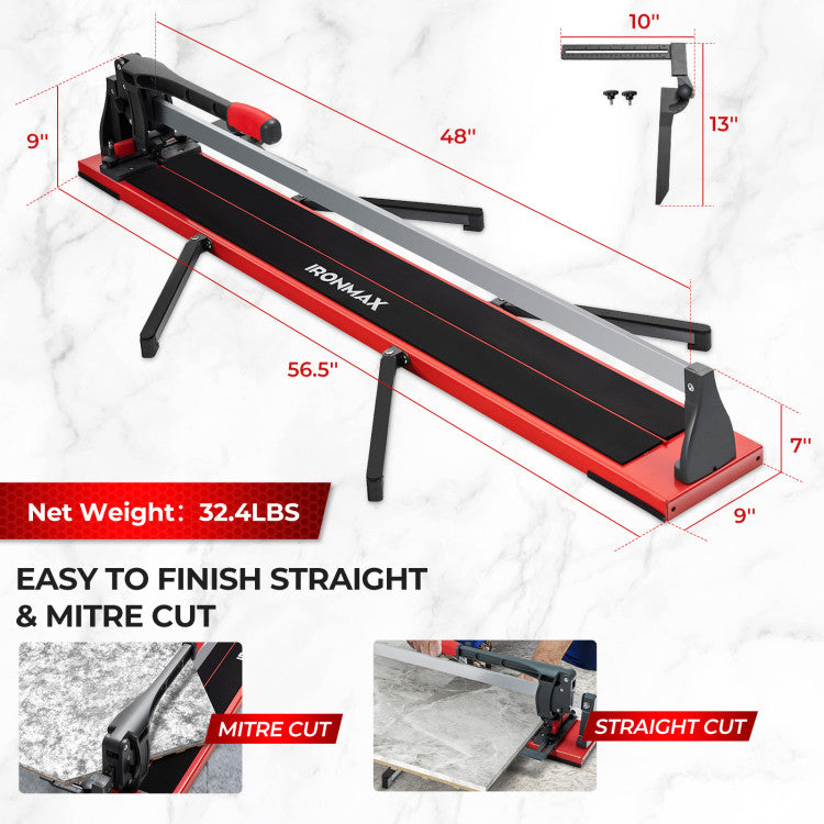 Ce coupe-carreaux professionnel de 48 pouces est conçu pour des coupes précises et sans effort dans les carreaux de céramique et de porcelaine. Équipé d'une molette de coupe en carbure de tungstène durable, d'un guide linéaire et d'une règle, cet outil garantit une finition nette et précise &ndash ; à chaque fois. Avec sa conception robuste, sa poignée ergonomique et ses supports latéraux réglables, ce coupe-carreaux est idéal pour les bricoleurs et les professionnels.