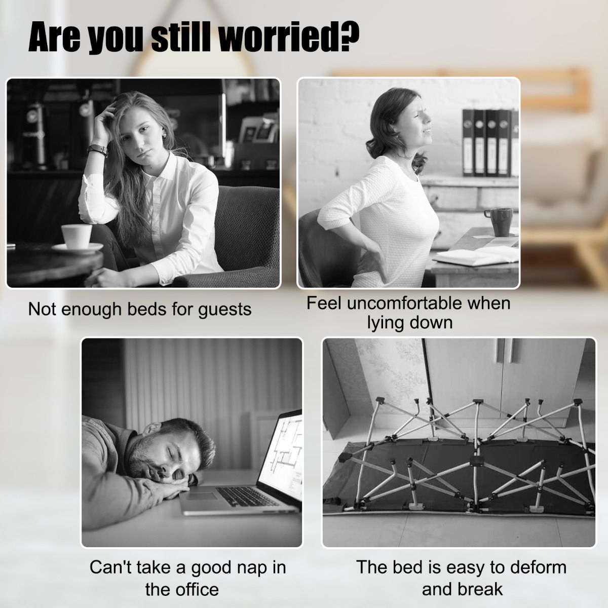 Ce lit pliant peut être facilement plié dans une taille compacte et rangé sous le lit ou dans un coin lorsqu'il n'est pas nécessaire, ce qui est particulièrement pratique si vous avez peu d'espace. Vous pouvez même le charger dans la voiture pour le camping ou les voyages grâce à son poids léger.