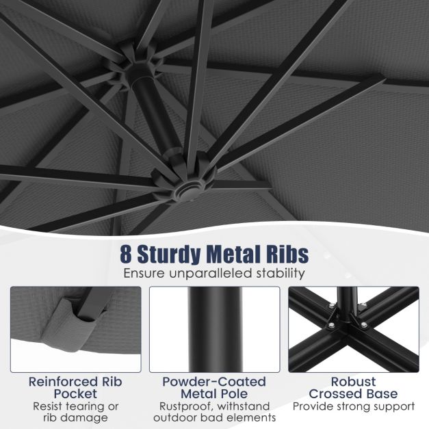 - Construction solide: Dotée de 8 baleines en métal et d'un mât robuste en métal peint par poudrage qui offre une stabilité supplémentaire.