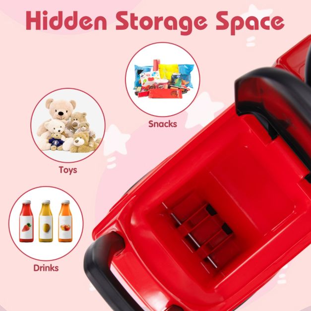 La voiture est équipée d'un volant avec claxon et musique fonctionnels (nécessite 2 piles AAA de 1,5 V, non incluses). Elle sert à la fois de siège et de jouet à pousser. Sous le siège se trouve un compartiment de rangement pratique et caché de 17,5 x 12 x 12 cm pour transporter de petits trésors. La charge maximale est de 23 kg.