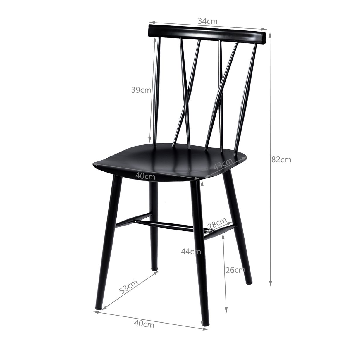 coast Lot de 2 chaises de salle à manger en métal noir - 40 x 51,5 x 82 cm - Cuisine/Salle à manger/Bar