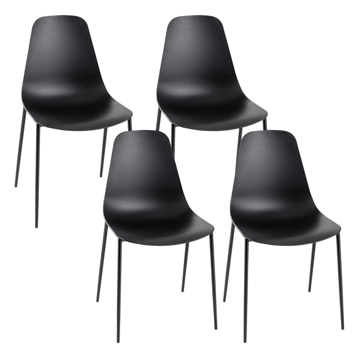 Coast Set of 4 Modern Dining Chairs Black 52.5 x 48.5 x 88 cm - Chaises de loisirs robustes avec pieds en métal