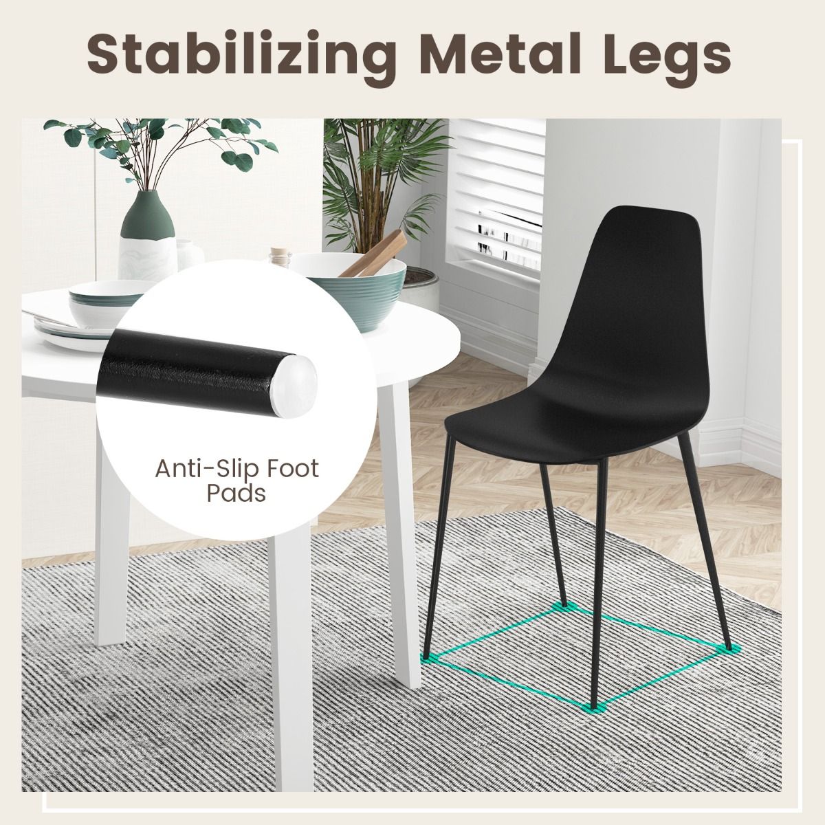 - Les patins antidérapants protègent le sol et augmentent la stabilité