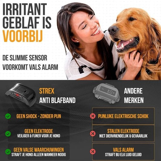 Le collier anti-aboiement Strex n'émet pas de chocs. Votre chien apprend à arrêter d'aboyer d'une manière naturelle et respectueuse des animaux. Lorsqu'un aboiement est détecté, le collier anti-aboiement émet un bip ou un bip et une vibration. Ce sont donc deux effets qui désapprennent les aboiements de votre chien. Les vibrations sont inconfortables mais ne sont pas dangereuses pour votre chien. Similaire à la fonction vibration de votre smartphone
