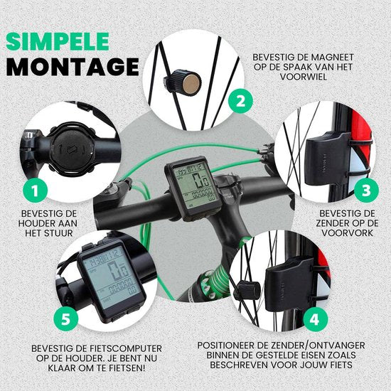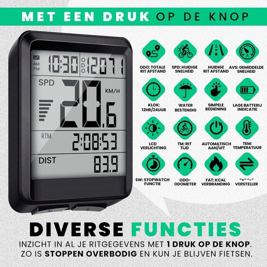 Strex Wireless Bike Computer - 17 Functions - Extra Large Screen - Wireless Bike Computer Wireless Waterproof - NL Manual