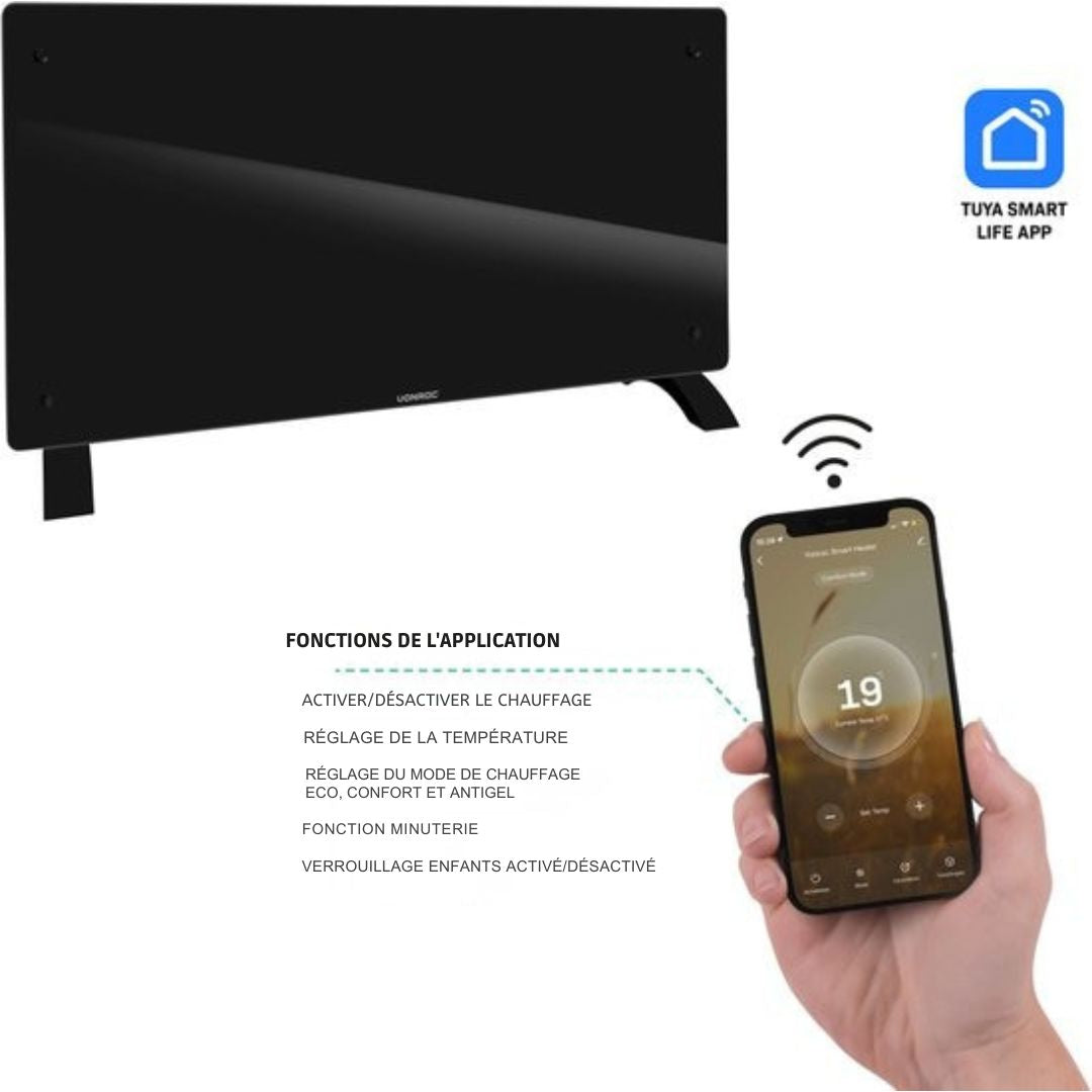 Grâce à sa connectivité Wi-Fi et l'application gratuite Tuya Smart Life, vous contrôlez votre confort à distance : allumez le chauffage sur le chemin du retour, réglez un programme hebdomadaire précis ou activez la sécurité enfant depuis votre smartphone. Son fonctionnement sans ventilateur garantit un silence absolu, idéal pour les chambres ou les bureaux.
