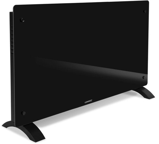 Chauffage électrique de luxe VONROC - Convecteur avec panneau en verre - 1250W/2500W- Chauffe les pièces jusqu'à 30m2 - Contrôlé par l'application (via Wifi) et manuellement - Thermostat et minuterie réglables - Noir