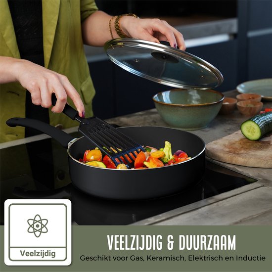 En outre, l'excellente qualité de ces poêles est un facteur important de longévité.Enset sont fabriquées de manière durable et excellentes à l'usage. Les poêles Coock sont fabriquées en aluminium recyclé, ce qui leur confère une longue durée de vie. Le fond de ces poêles est recouvert d'un revêtement perlé antiadhésif spécial qui empêche les aliments de brûler, de sorte que les poêles à frire conservent longtemps leur grande qualité. Les différentes casseroles et poêles à frire conviennent à différents types de plaques de cuisson, telles que gaz, céramique, électrique et induction, ce qui facilite le processus de cuisson. L'ensemble de poêles est donc polyvalent pour tout le monde.