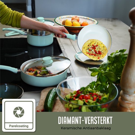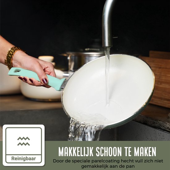 Fabriquée en aluminium entièrement recyclé et dotée d'un revêtement antiadhésif en céramique durable, la poêle wok Coock turquoise est le choix idéal pour les cuisiniers soucieux de l'environnement. Cette poêle très robuste durera des années, ce qui signifie que vous devrez acheter une nouvelle poêle moins souvent, réduisant ainsi votre empreinte carbone. Le revêtement en céramique est sans produits chimiques nocifs tels que PFOA et PTFE, vous pouvez donc cuisiner en toute confiance.
