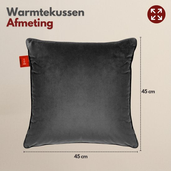 Coozie Rechargeable Heat Pillow - sans fil et filaire - 45-65°C - Velours - 45 x 45 cm - Anthracite Grey - Oreiller électrique - Powerbank incluse - Jusqu'à 8 heures de chaleur