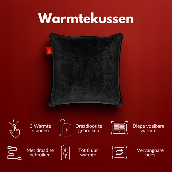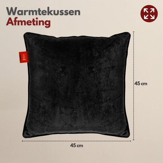 Coozie Rechargeable Heat Pillow - sans fil et filaire - 45-65°C - Velours - 45 x 45 cm - Noir - Oreiller électrique - Powerbank incluse - Jusqu'à 8 heures de chaleur